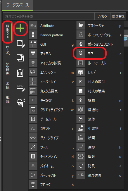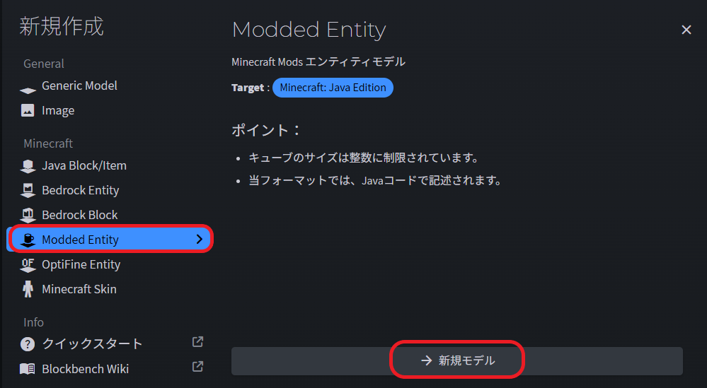 ブロックベンチで作成します。Modded Entityを選択し、新規モデルを作成します。