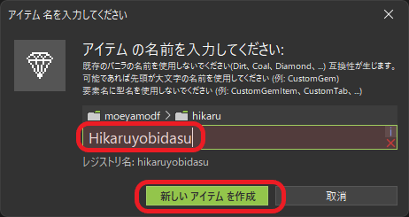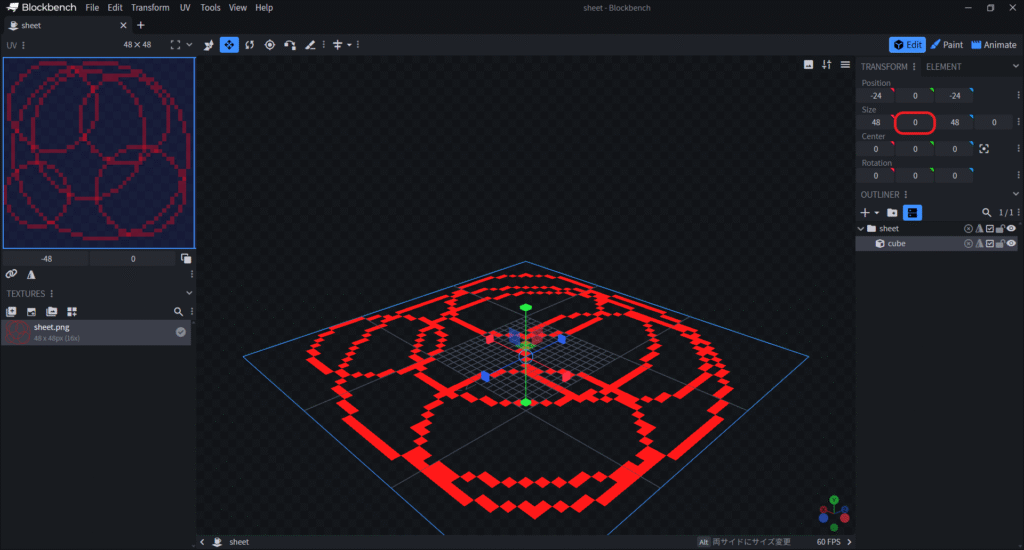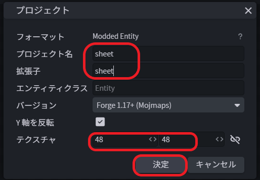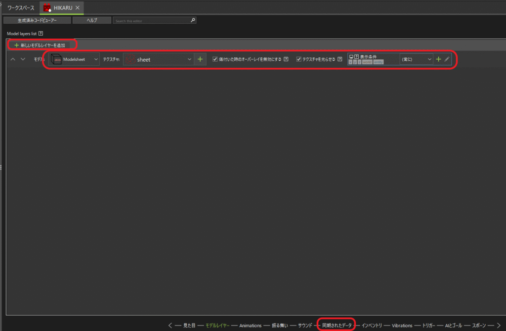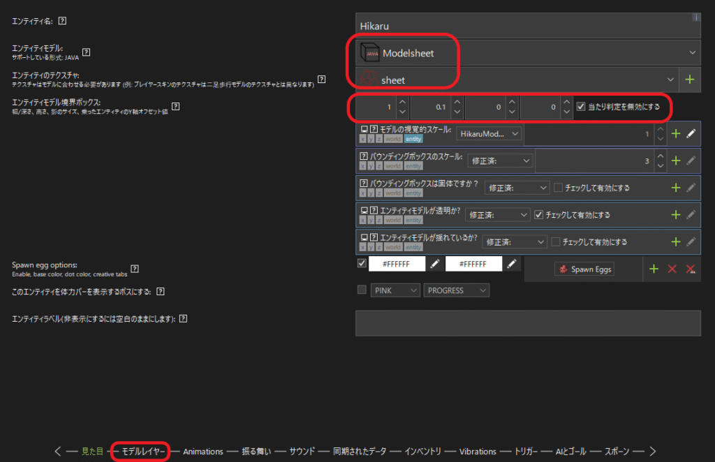 モデルとテクスチャ、当たり判定を設定し、モデルレイヤーに移動します。