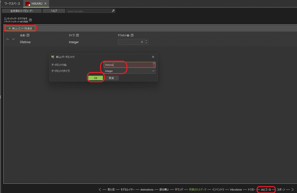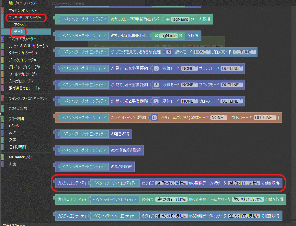 エンティティプロシージャのデータから、整数データパラメータを持ってきます。