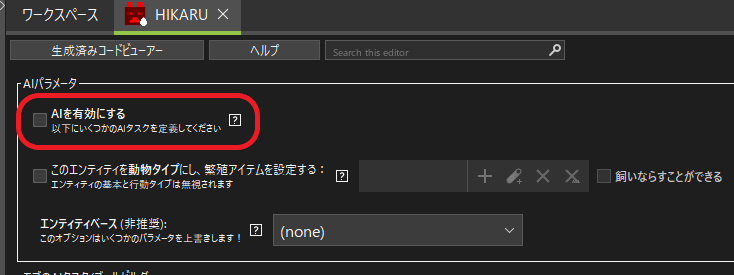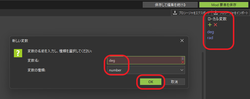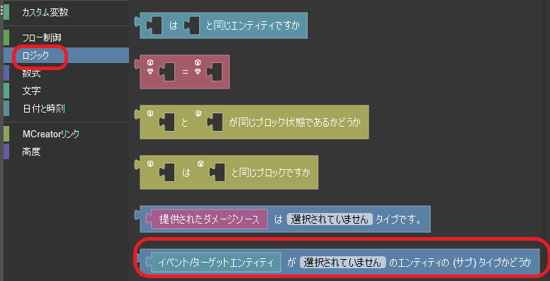 ロジックから、エンティティのタイプを指定するプロシージャを持ってきます。