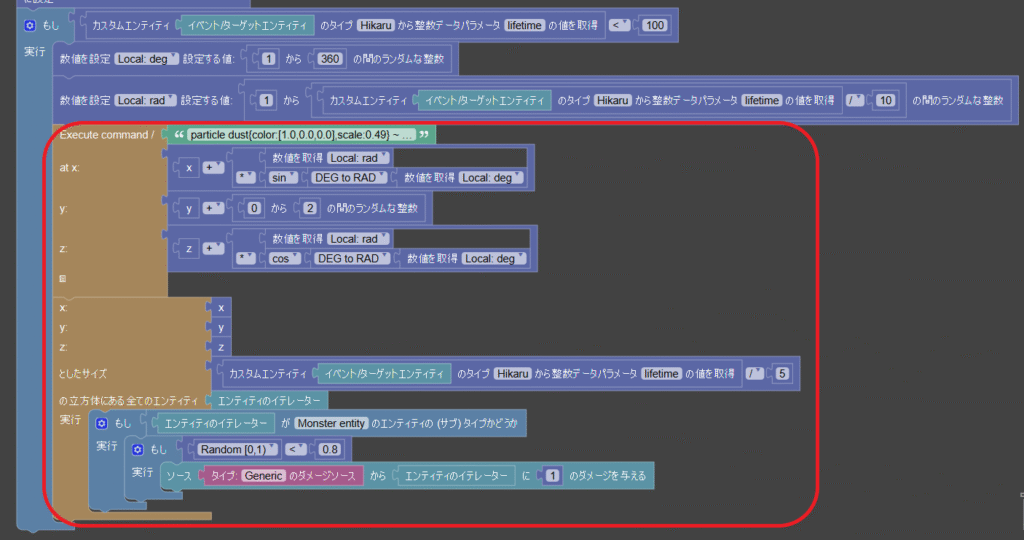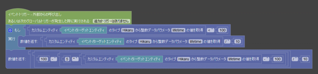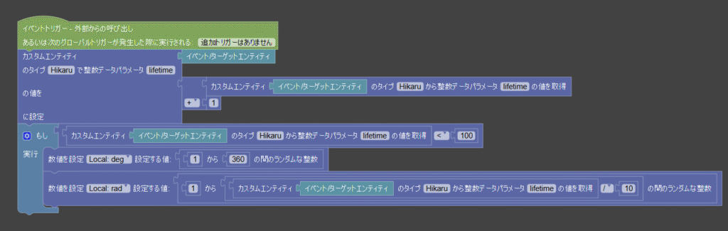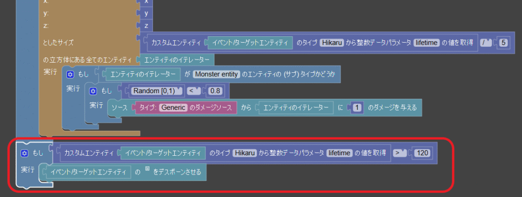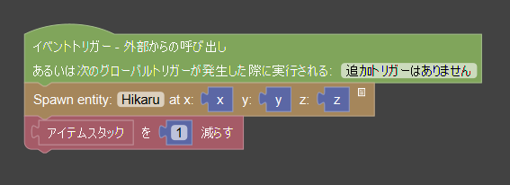 このように設定し、エンティティを召喚してアイテムを消します。保存して完成です。