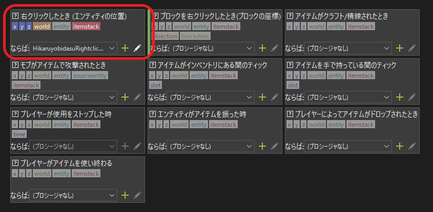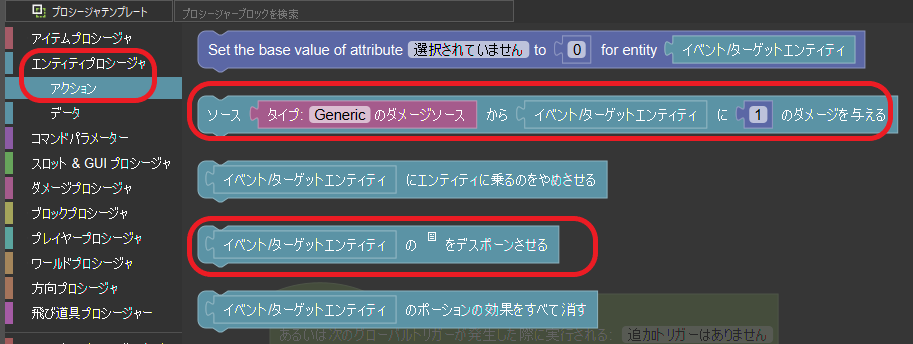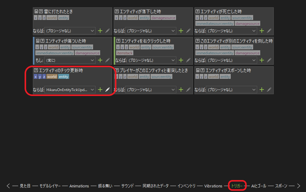 トリガーに移動し、エンティティのチック更新時のプラスから、プロシージャを作成します。
